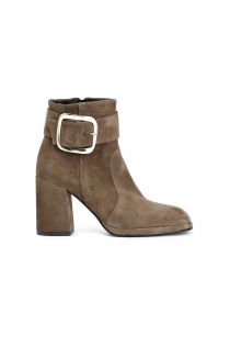 tronchetto donna in pelle scamosciata con fibbia taupe