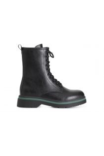 Tronchetto donna allacciato in similpelle di colore nero. suola in gomma con banda colorata di verde tacco da 40mm.