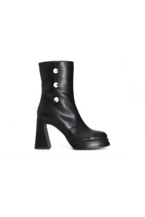Tronchetto da donna in similpelle con tre borchie esagonali. calzatura dal perfetto stile seventies. il tacco altezza 95mm insieme al plateau di 18mm donano equilibrio tra altezza bellezza e comodità.