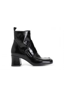 Tronchetto da donna in vernice con cucitura ornamentale sulla tomaia. il gusto molto chic ti permette di indossarlo con qualsiasi abbigliamento per ogni occasione giornaliera o serale. la punta e il tacco sono squadrati.