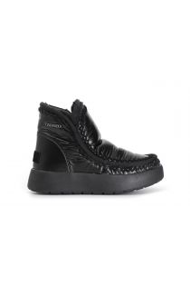 Tronchetto da donna in nylon con plateau fodera in simil pelliccia e logo metallico posizionato sul gambale.