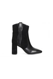 Tronchetto da donna in nappa e camoscio. modello iconico dalla forma leggermente arrotondata per uno stile innovativo e raffinato. tacco alto 80 mm. il soletto è pelle.