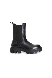 Tronchetto monocolore da donna in pelle con elastico laterale. soletto in pelle e suola carro armato.