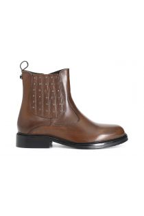 Tronchetto da donna in pelle con elastico nascosto arricchito da una cascata di borchie. il tacco è altezza 30mm e il soletto è in pelle.