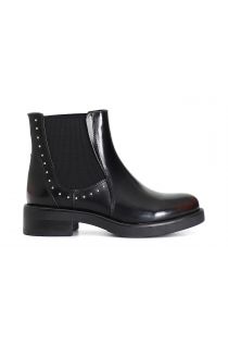 Tronchetto da donna in similpelle spazzolata con elastici sulla parte laterale del gambale per agevolare la calzata. il tutto arricchito da microborchie cromate. il soletto è in pelle.