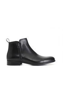 Tronchetto in pelle con cerniera ornamentale e soletto in pelle.