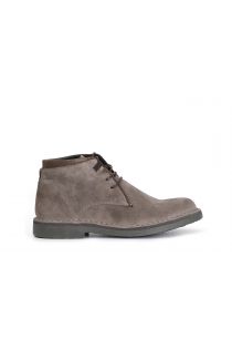 Tronchetto uomo in pelle scamosciata allacciato con riporti in pelle. tomaia cucita alla suola. soletto in pelle.