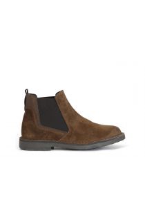 Tronchetto uomo in pelle scamosciata con elastico laterale e riporti in pelle. tomaia cucita alla suola. soletto in pelle.
