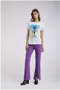 Tshirt a manica corta in jersey di cotone 100% che riproduce il simpatico cat noir sciatore