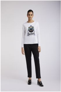 Tshirt a manica lunga in jersey di cotone 100% che riproduce il simpatico cat noir in versione peruviana.