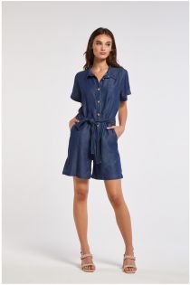 tuta corta con abbottonatura davanti in denim tencel blu medio