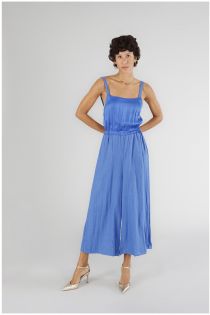 Tuta bimateriale con pantaloni palazzo in tessuto mistolino e top in satin di viscosa. tuta con spalline. vita elasticata che sottolinea il punto vita.