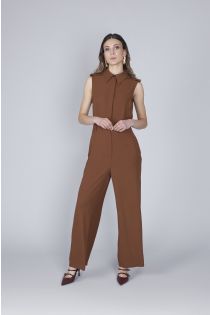 Tuta smanicata in tessuto fluido perfetta per un look casual chic. linea ampia colletto classico e tasche laterali. la modella è alta 173 cm e veste la s. vestibilità della tuta: regular.