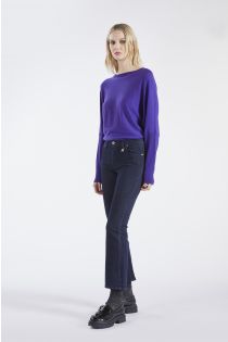 Pantaloni basico in tela denim superstretch con vestibilità cropped flare