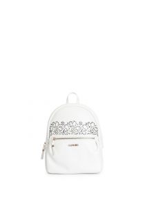 zaino con laseratura floreale, tasca zip e dettagli decorativi bianco