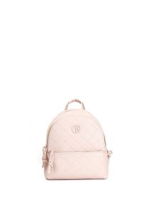 Zaino con logo embossed all-over da portare in spalla con doppio scomparto e doppia cerniera. ampia tasca frontale con zip. spallacci regolabili. tiralampo a treccia con charm.