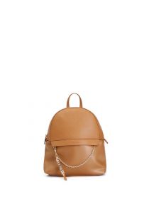 Zaino in saffiano liscio. tasca frontale con tiralampo arricchita da letterine in metallo e catena removibile. chiusura con cerniera. spallacci regolabili.