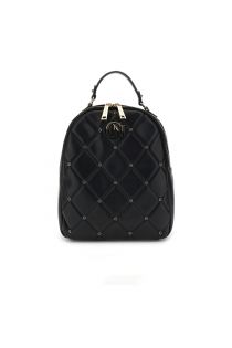 Zaino con trapunta a rombi con applicazione di rivetti in tono e logo cafènoir bicolore. due tasche interne una con chiusura con zip l'altra aperta. doppia apertura con cerniera. spallacci regolabili.