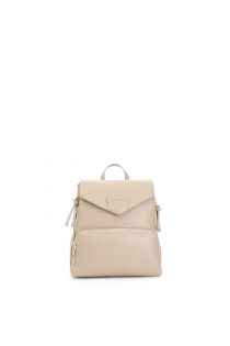 zaino ecopelle con tasca zip round, tasche laterali con cerniera nocciola