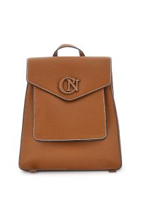 zaino effetto con grana effetto pelle con pattina con logo cucito cuoio