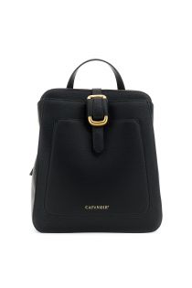 Zaino sfoderato in similpelle effetto pelle saffiano con tasca piatta frontale. logo cafènoir embossed e dettaglio metallico dorato per un tocco di eleganza urbana.