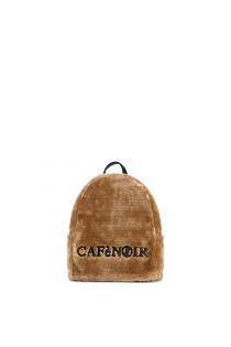 Zaino di medie dimensioni in ecopelliccia e logo ricamato in contrasto