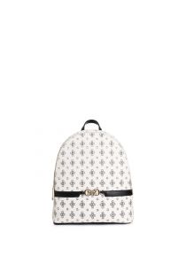 zaino in saffiano con stampa monogram, doppia zip e dettagli a contrasto nero