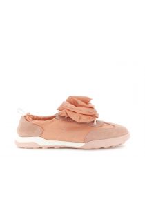 Sneakers allacciate da donna in nylon e pelle scamosciata con maxi fiore removibile. soletto in pelle e suola alta 2.3 cm. comode cool e perfette per uno stile unico creativo e urban-glam.